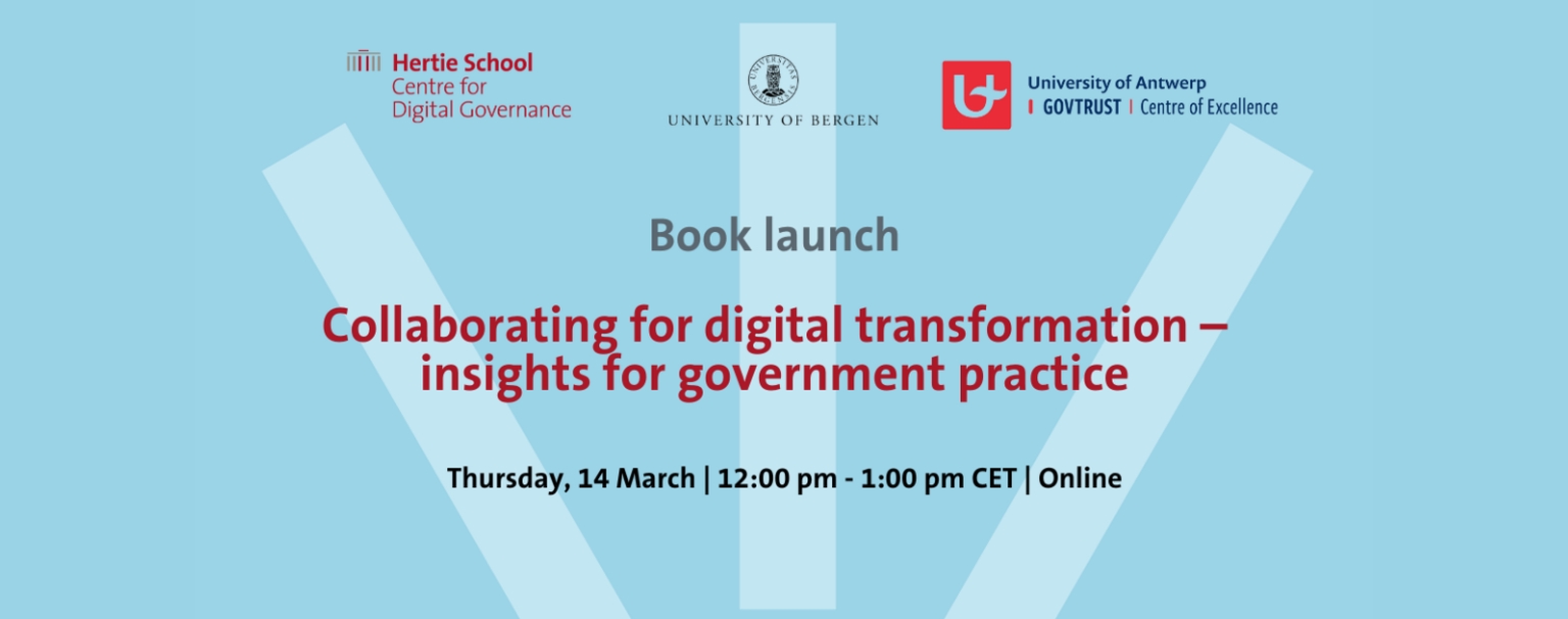 Join us for the virtual book launch of Collaborating for Digital Transformation. How Internal and External Collaboration Can Contribute to Innovate Public Service Delivery co-edited by Koen Verhoest, Gerhard Hammerschmid, Lise H. Rykkja and Erik Hans Klijn.