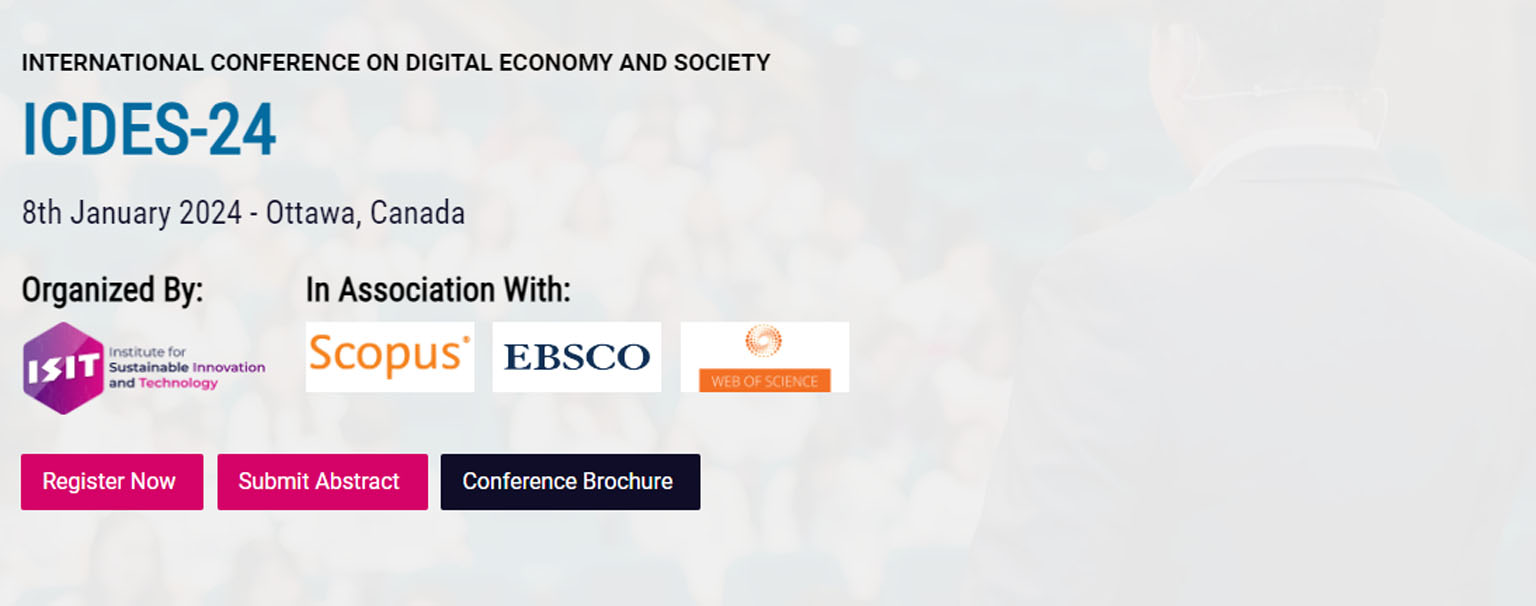 Welcome to International Conference on Digital Economy and Society (ICDES-24), an international conference that brings together experts, researchers, educators, and students from around the world to share their experiences and exchange knowledge. Our upcoming conference will be held on 8th January 2024 in Ottawa, Canada, and will feature a range of sessions, including keynote speeches, panel discussions, workshops, and poster presentations. Our aim is to create a collaborative and stimulating environment that encourages networking, idea-sharing, and knowledge transfer between participants. At this conference, you can expect to enjoy a diverse range of activities that are designed to engage and inspire you. You will have the opportunity to learn from prominent speakers, participate in interactive discussions, and discover new trends and technologies that are shaping the future.