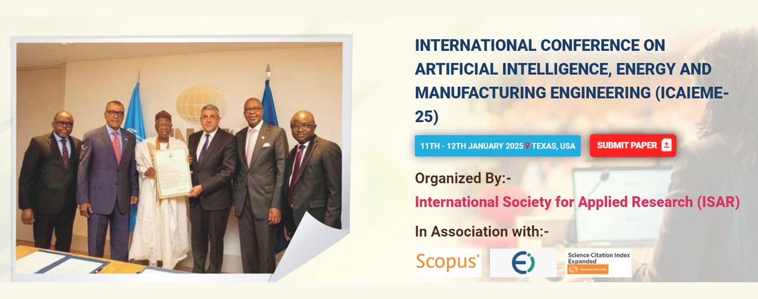 International Conference on Artificial Intelligence, Energy and Manufacturing Engineering (ICAIEME-25) will be held in Texas, USA on 11th – 12th January 2025.