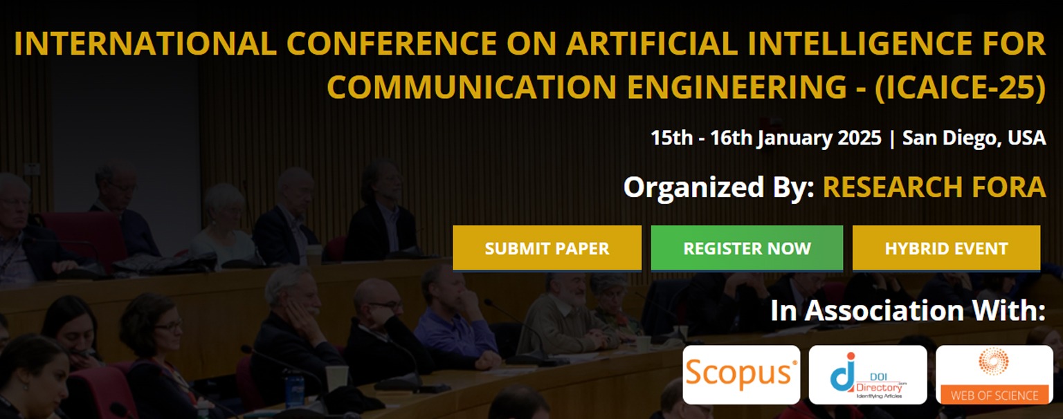 We are thrilled to invite you to attend the International Conference on Artificial Intelligence for Communication Engineering – (ICAICE-25) conference, taking place on 15th – 16th January 2025 at San Diego, USA. The event will bring together leading experts, thought-provoking discussions, and a diverse group of attendees from around the world. With over 500 participants expected, the conference will provide ample opportunities for networking and professional growth.