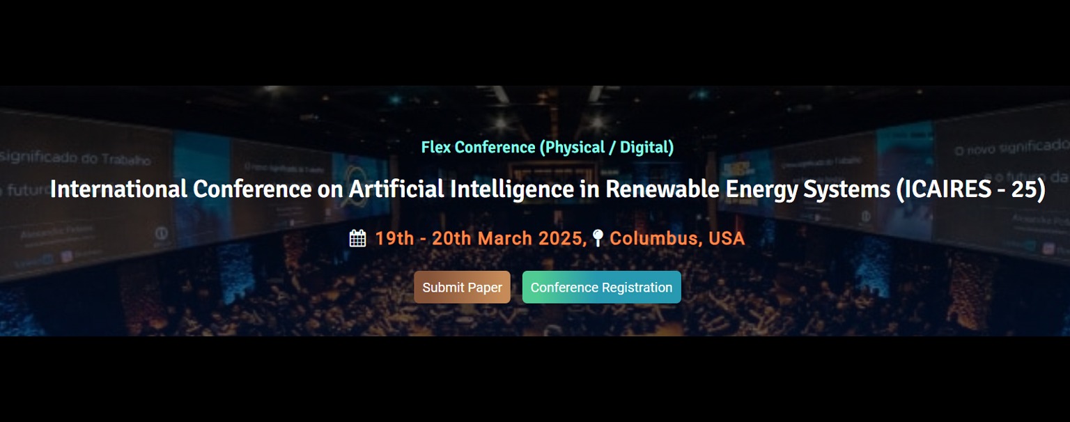 Join us at the highly anticipated International Conference on Artificial Intelligence in Renewable Energy Systems (ICAIRES – 25), taking place in Columbus, USA on 19th – 20th March 2025 . Hosted by one of the most trusted organizations, SAIRAP, the conference provides a premier global platform for exchanging ideas and insights on the latest developments across various fields. Our goal is to offer a competitive venue for industry professionals and academic researchers to showcase and discuss cutting-edge advancements in their respective fields.