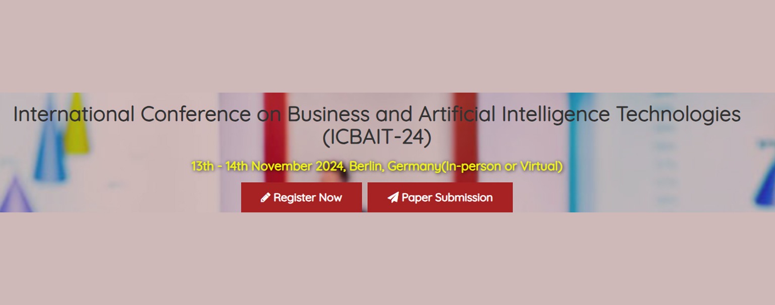 With sincere pleasure and honour, IITER welcomes you to attend International Conference on Business and Artificial Intelligence Technologies (ICBAIT-2024) on 13th – 14th November 2024 at Berlin , Germany. The high-level discussions will gather expert speakers, informative topics, and participants from around the globe. In addition, there will be the finest networking opportunities, with more than 500 participants anticipated. The detailed session will include keynote lectures, oral talks, poster presentations, symposia, workshops, and more