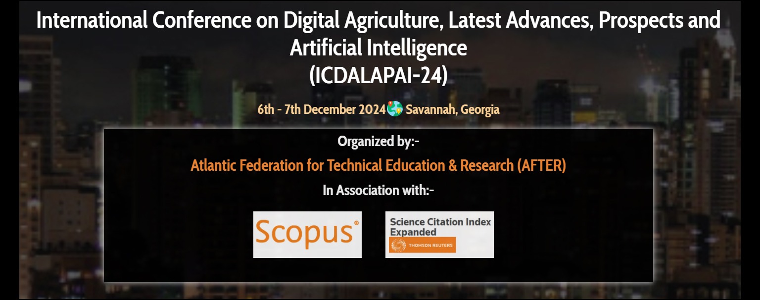 International Conference on Digital Agriculture, Latest Advances, Prospects and Artificial Intelligence(ICDALAPAI-24) will be held in Savannah, Georgia on 6th – 7th December 2024