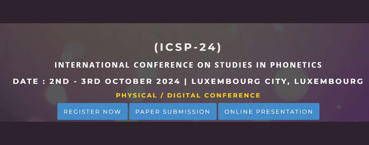 The upcoming (ICSP-24) at Luxembourg City, Luxembourg has been organized on 2nd – 3rd October 2024 and scheduled to alleviate this exact challenge by serving as a focal point for reseachers in the discipline of Studies in Phonetics from the world over to gather together, learn from one another, impart and propagate their expertise, and put in place policies and mechanisms that will safeguard the stedfast growth and advancement of Studies in Phonetics. In addition, participants of this event will be privileged with numerous opportunities to ensure their own personal advancement – be it in their studies, research work, career, or entrepreneurial endeavors.